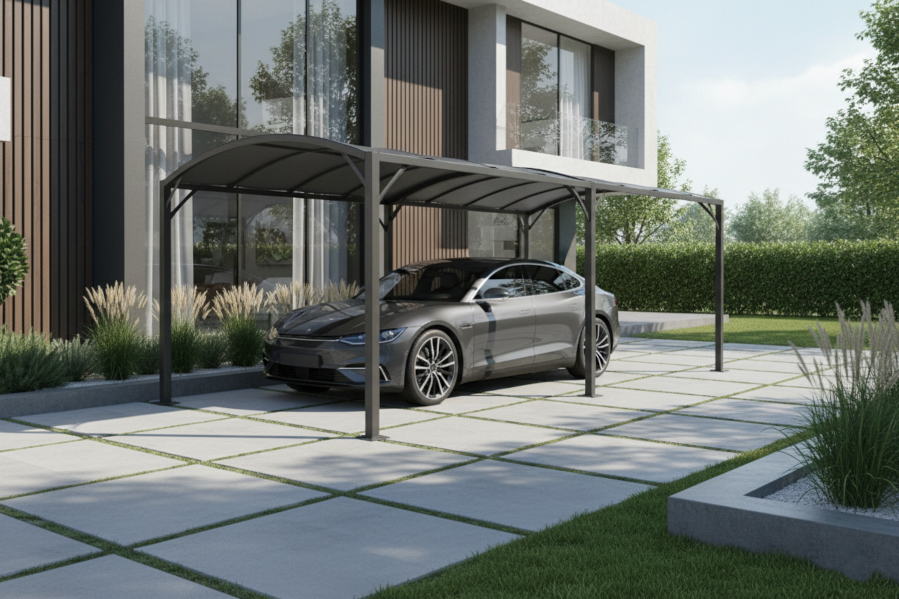 Carport deluxe è una carport estensibile da 300×300 cm a 300×565 cm l’altezza massima è di 243 cm,