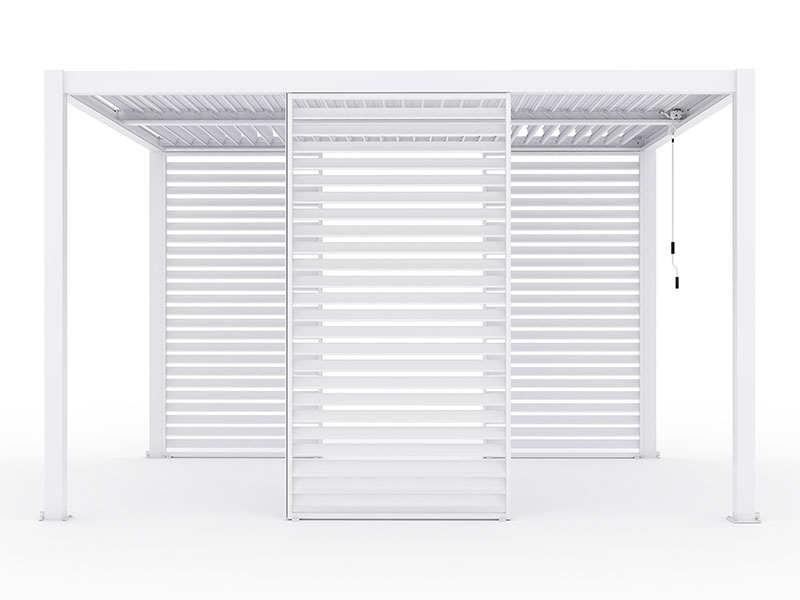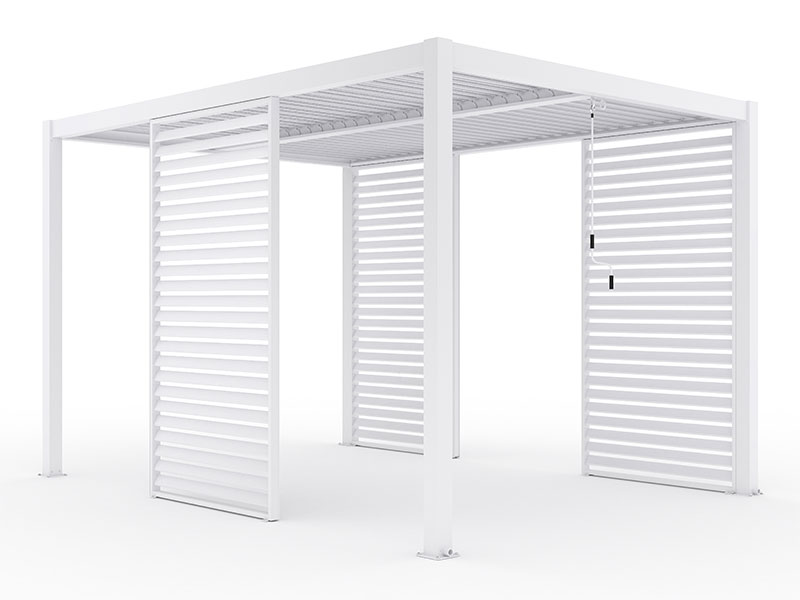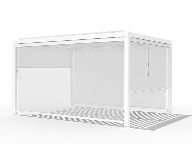 Tutti i pannelli laterali sono opzionali. Ogni pergola Calicantus è accessoriabile con pannelli laterali avvolgibili “Calicantus Screen” e “Calicantus Zip Screen” o con pannelli a veneziana fissi “Calicantus Blind”o scorrevoli e a lamelle orientabili “Calicantus Sliding Blind”.