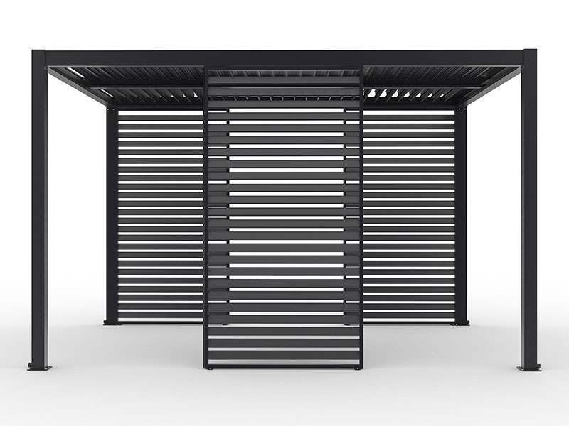 Tutti i pannelli laterali sono opzionali. Ogni pergola Calicantus è accessoriabile con pannelli laterali avvolgibili “Calicantus Screen” e “Calicantus Zip Screen” o con pannelli a veneziana fissi “Calicantus Blind”o scorrevoli e a lamelle orientabili “Calicantus Sliding Blind”