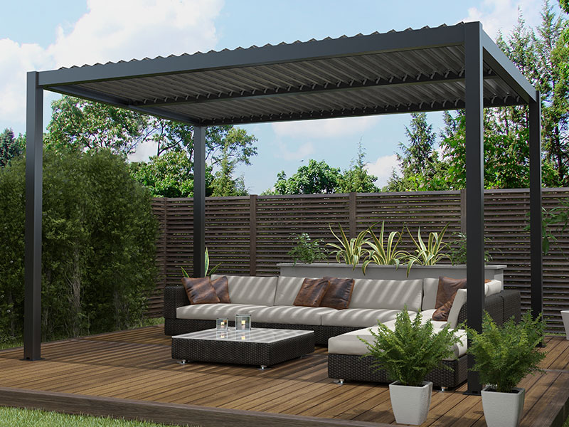 Pergola bioclimatica motorizzata Calicantus Plus antracite 4x4x(H)2.50 m