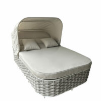 Agapanthus è un sunlounge doppio rivestito di un intreccio in maglia tubolare di textilene che ne caratterizza il design moderno e accattivante.