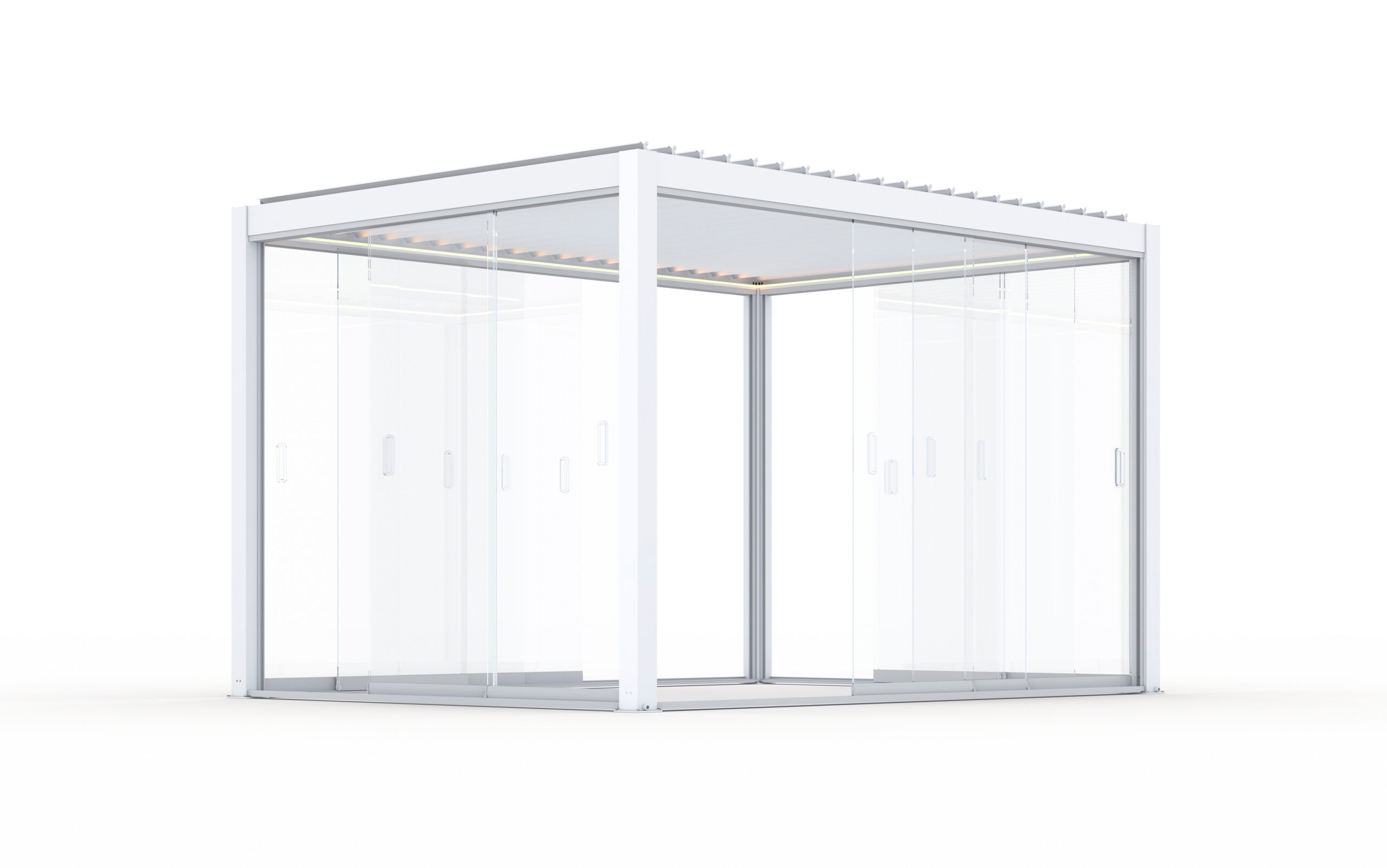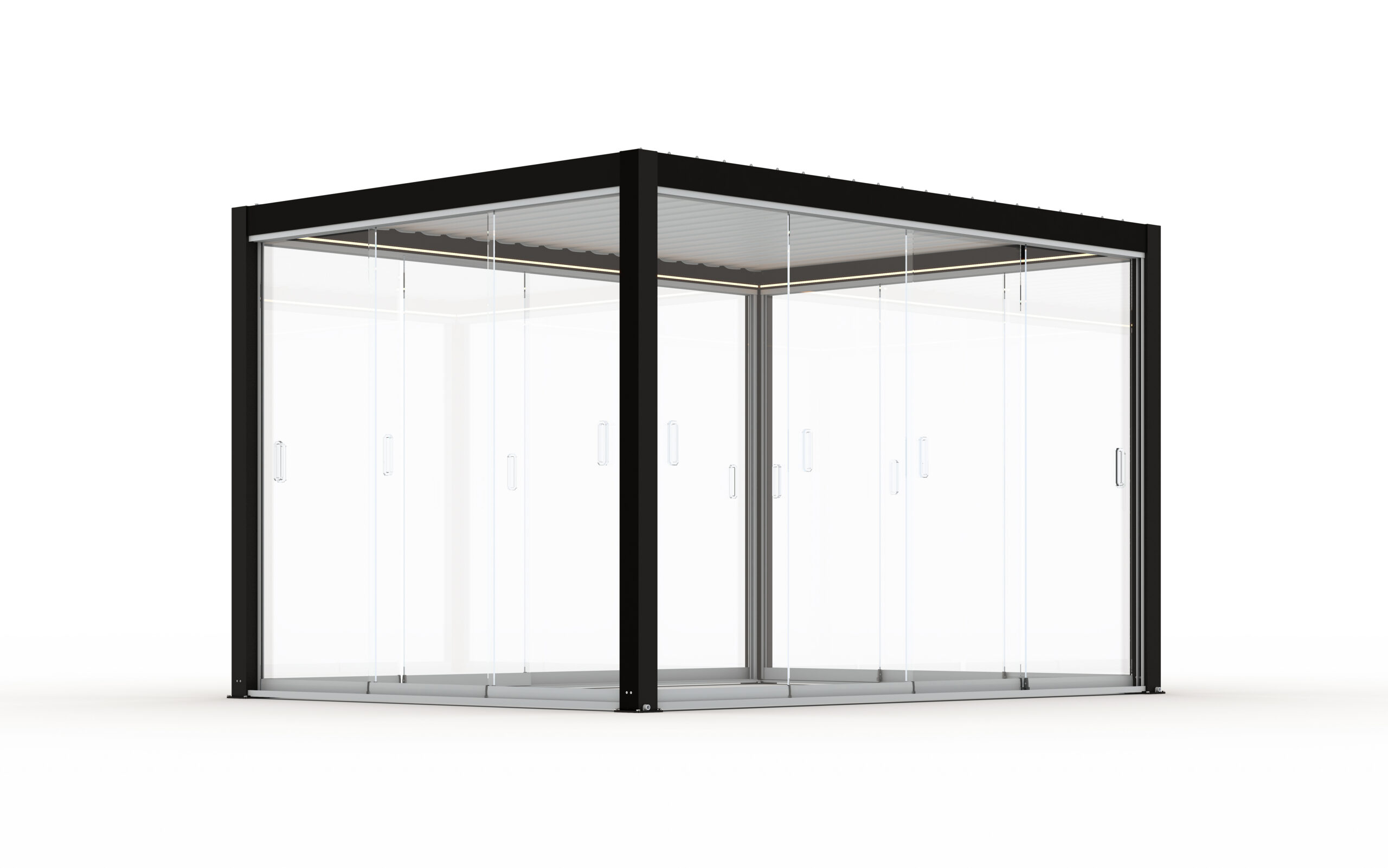 370 x 238 cm (Per lato 4m; composto da 4 x 024027 (vetro singolo) e 1 x 024026 (guida 4 m))